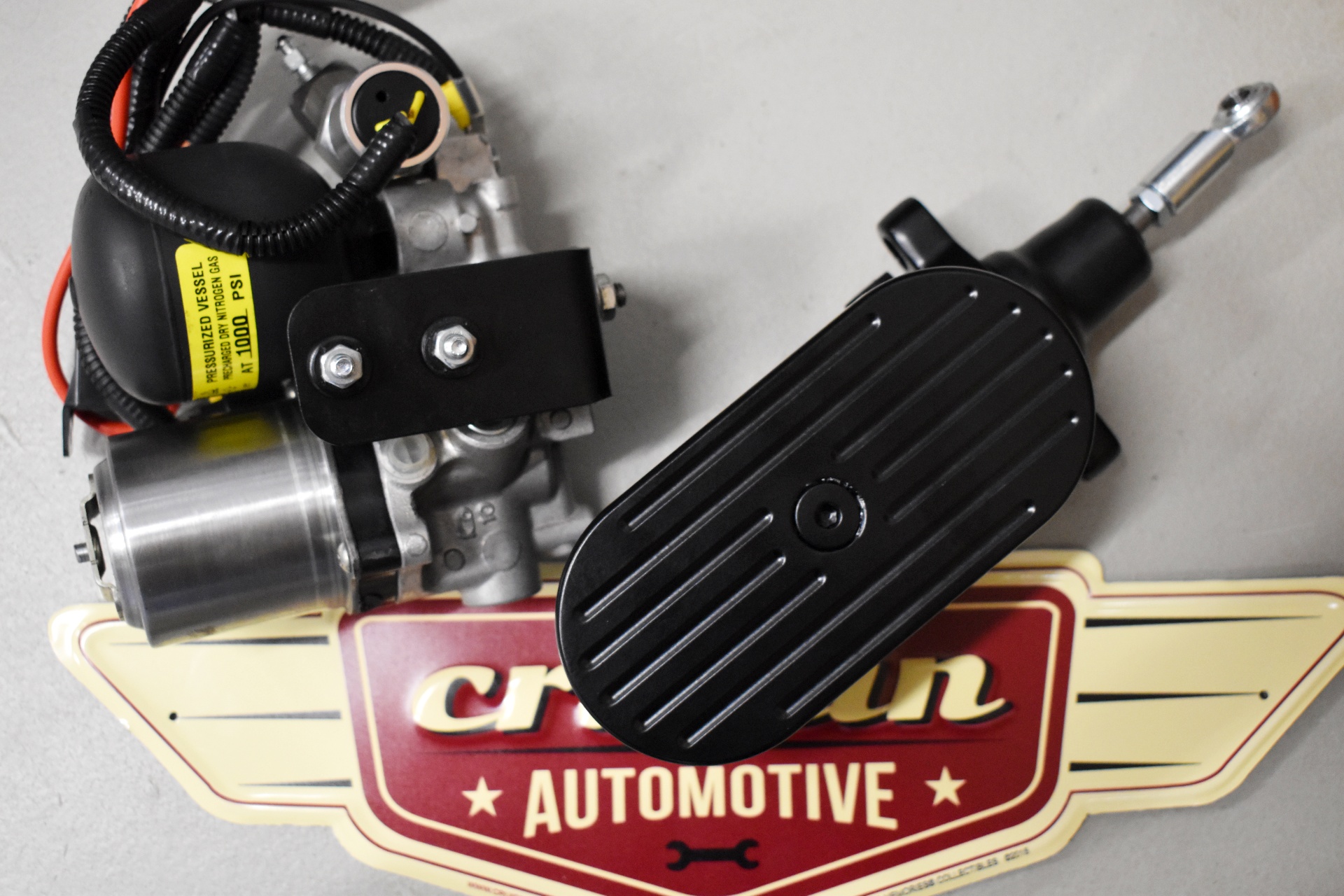 Electric Brakes Firewall Mount Mini Electric High Pressure Master Cylinder 6.5″ with Pump & Accumulator BLACK POWDER COAT – Satin Black