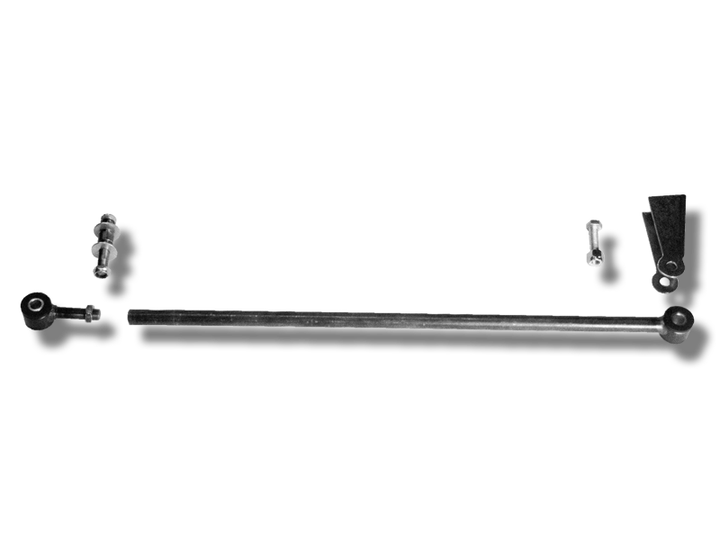 A “must” for cross steering installations. Eliminates lateral movement of axle that affects steering. Improves handling & stability. Adjustable bar features urethane bushings. Threaded stud can be bolted to I-beam or welded to tube axle.