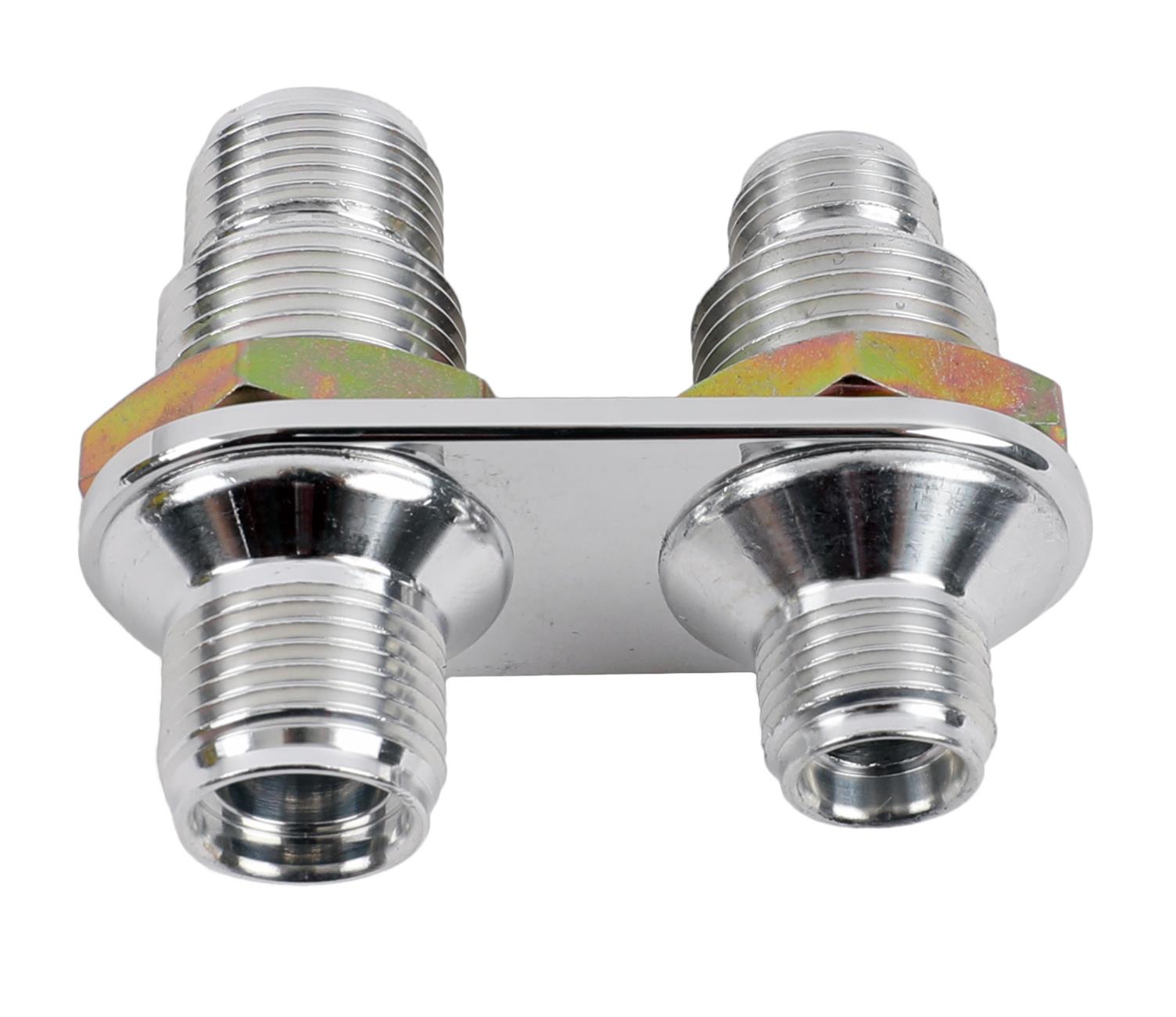 Streamline Polished Aluminium Two-Way Bulkhead Plate for AC 6-8 Male O-Ring.